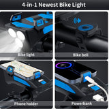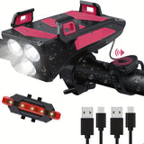 USB Rechargeable Bike Light Set - 3 LEDs, Front & Rear Lights, Power Bank, Horn