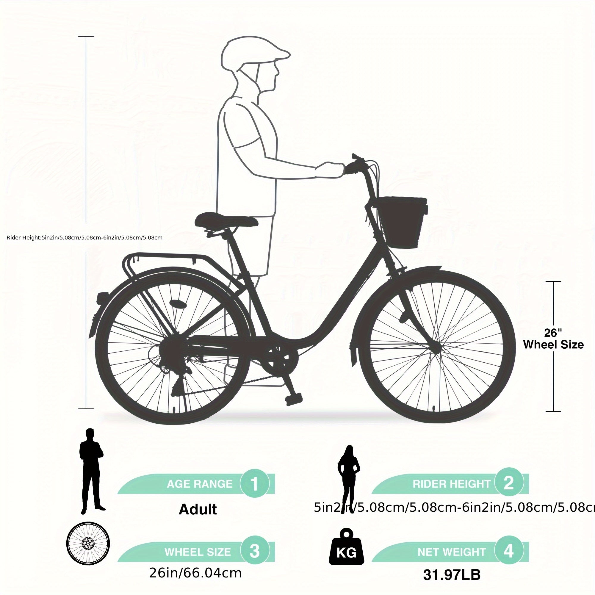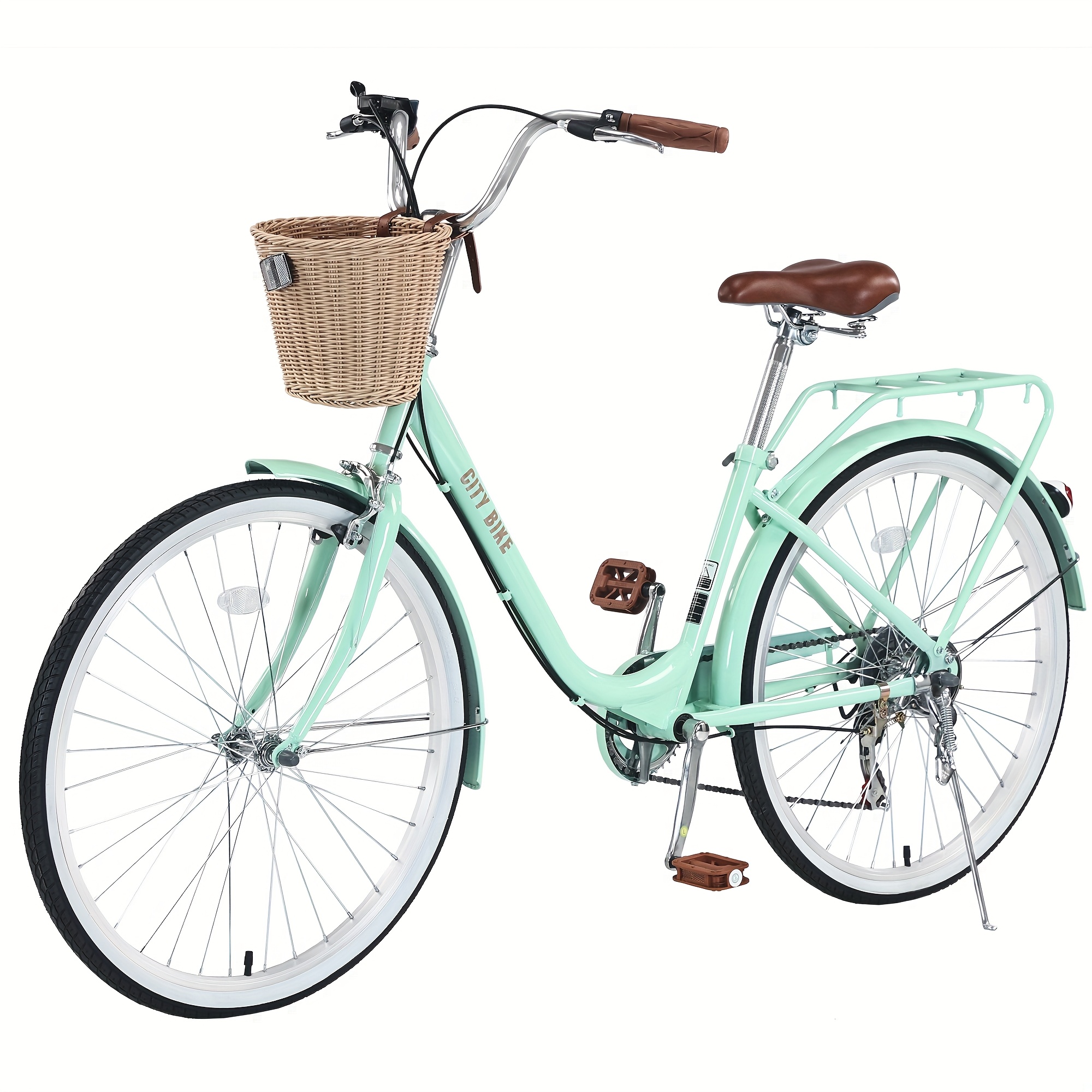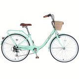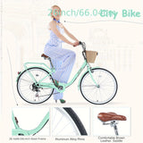 26 Inch Cruiser Bike for Adult, 7 Speeds City Bicycle with Front Basket, Rear Rack, for Women, Female