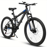 Mountain Bike for Men & Women, 26 Inch Wheels 21-Speed Full Suspension, Carbon Steel Frame, Disc Brakes