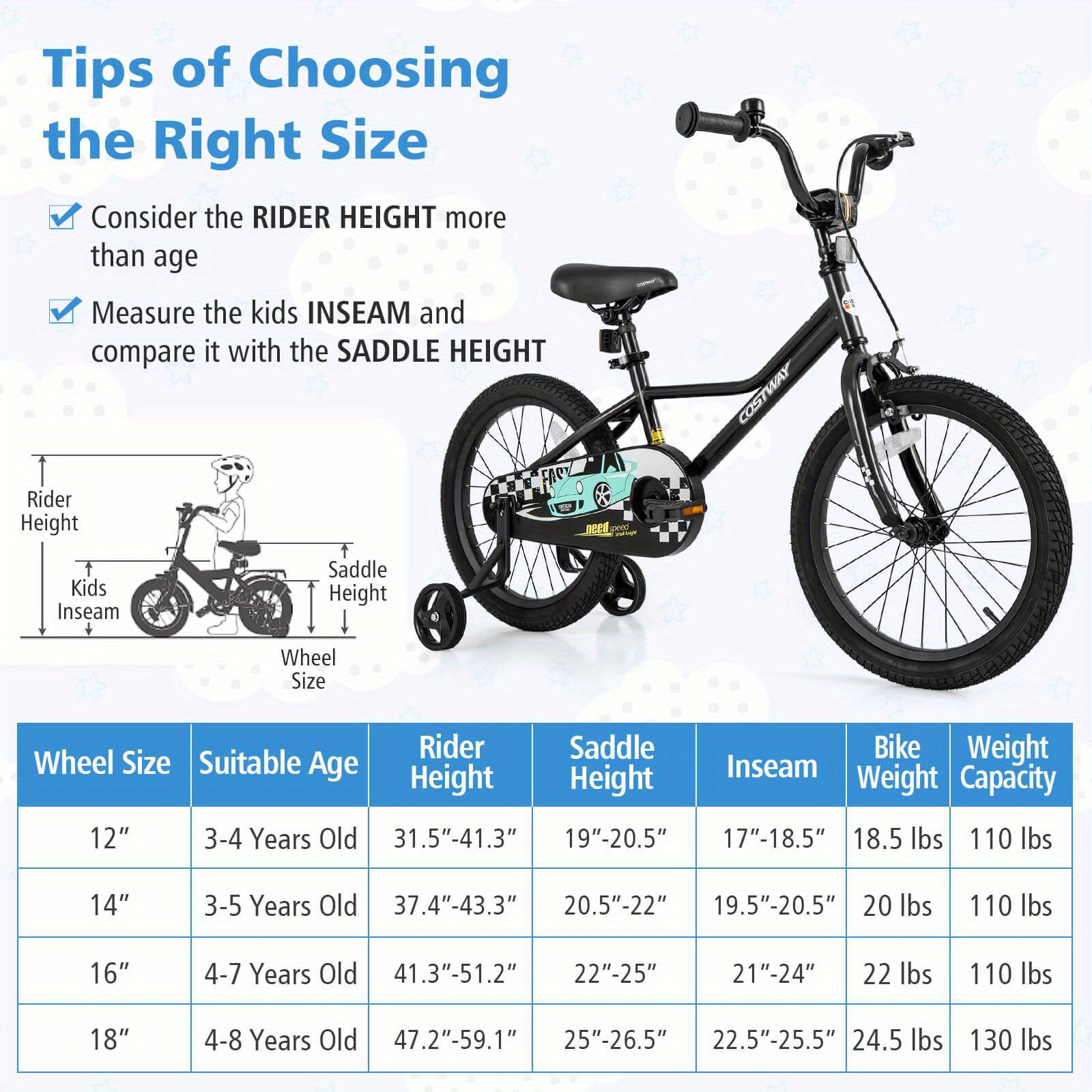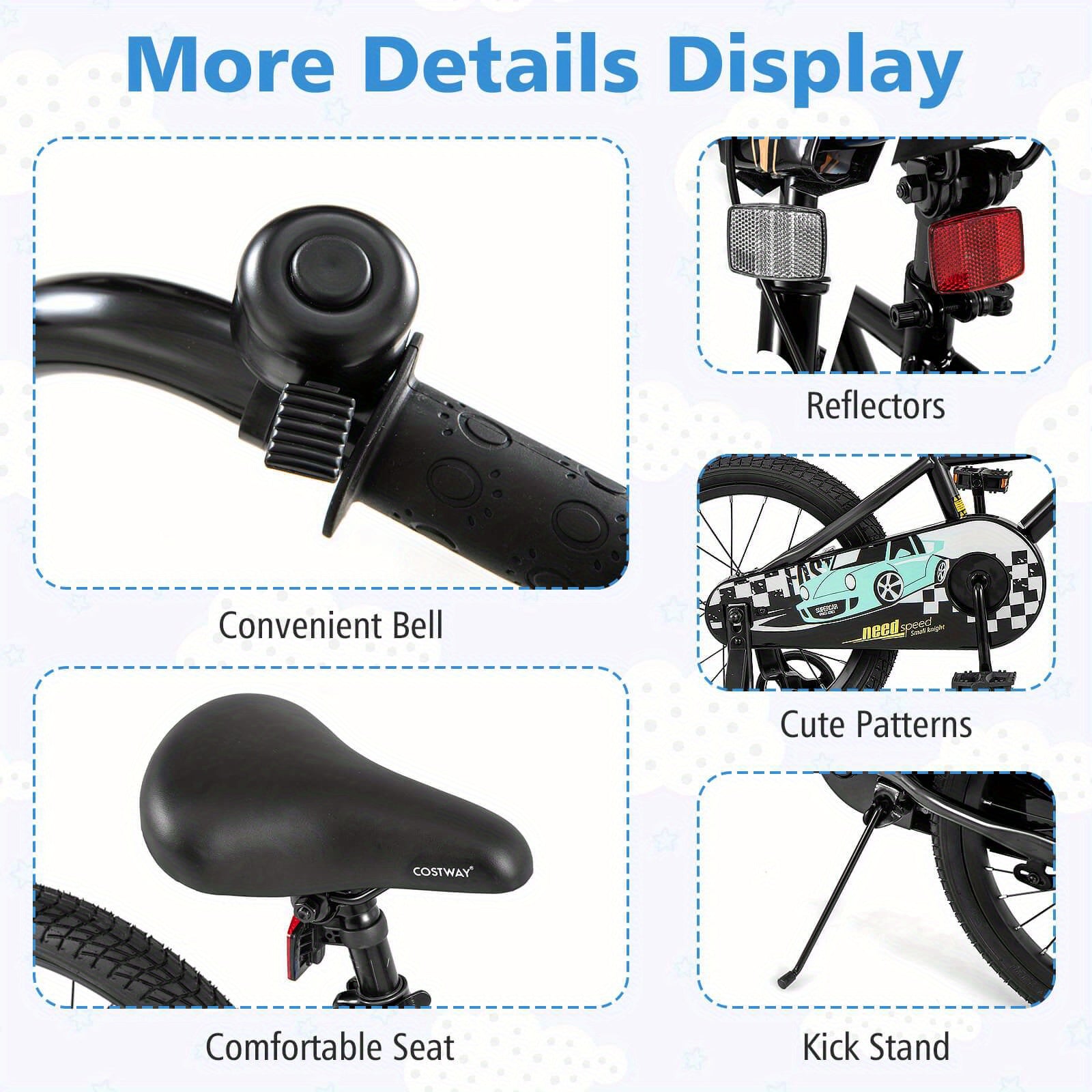LIFEZEAL 18 Inch Kids Training Bikew\u002F Removable Training Wheels Pneumatic Tires