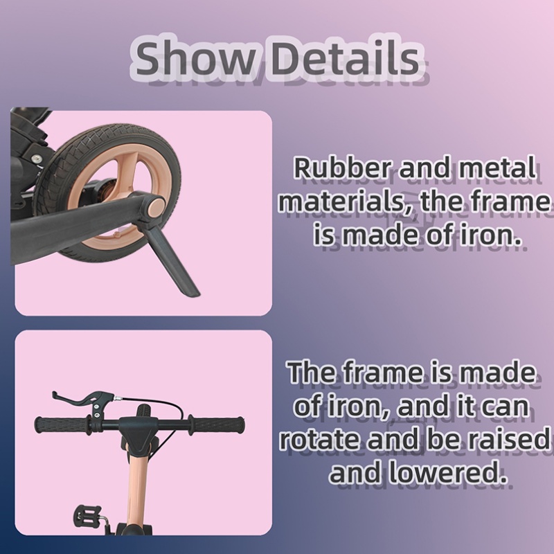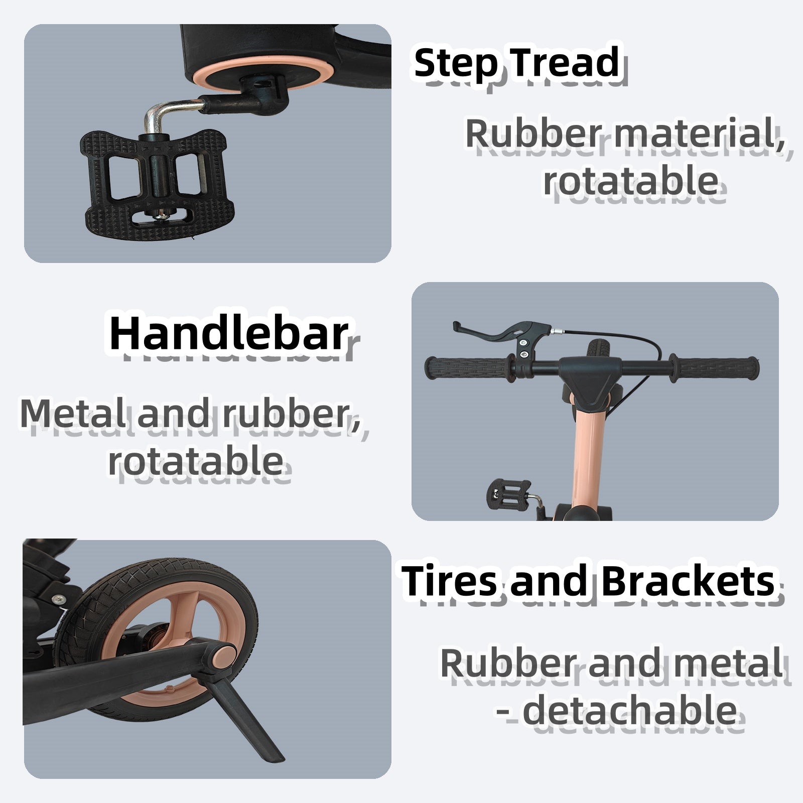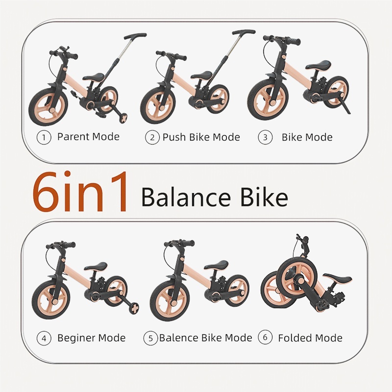 Pink 6-in-1 Balance Bike for Kids - Carbon Fiber Wheels, No Brakes Needed, Lightweight & Durable Design
