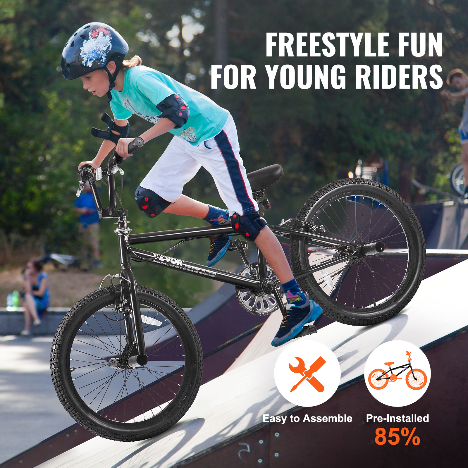 VEVOR 20-Inch BMX Bike Freestyle Bike Men Kids BMX Bicycle Hi-Ten Steel Frame