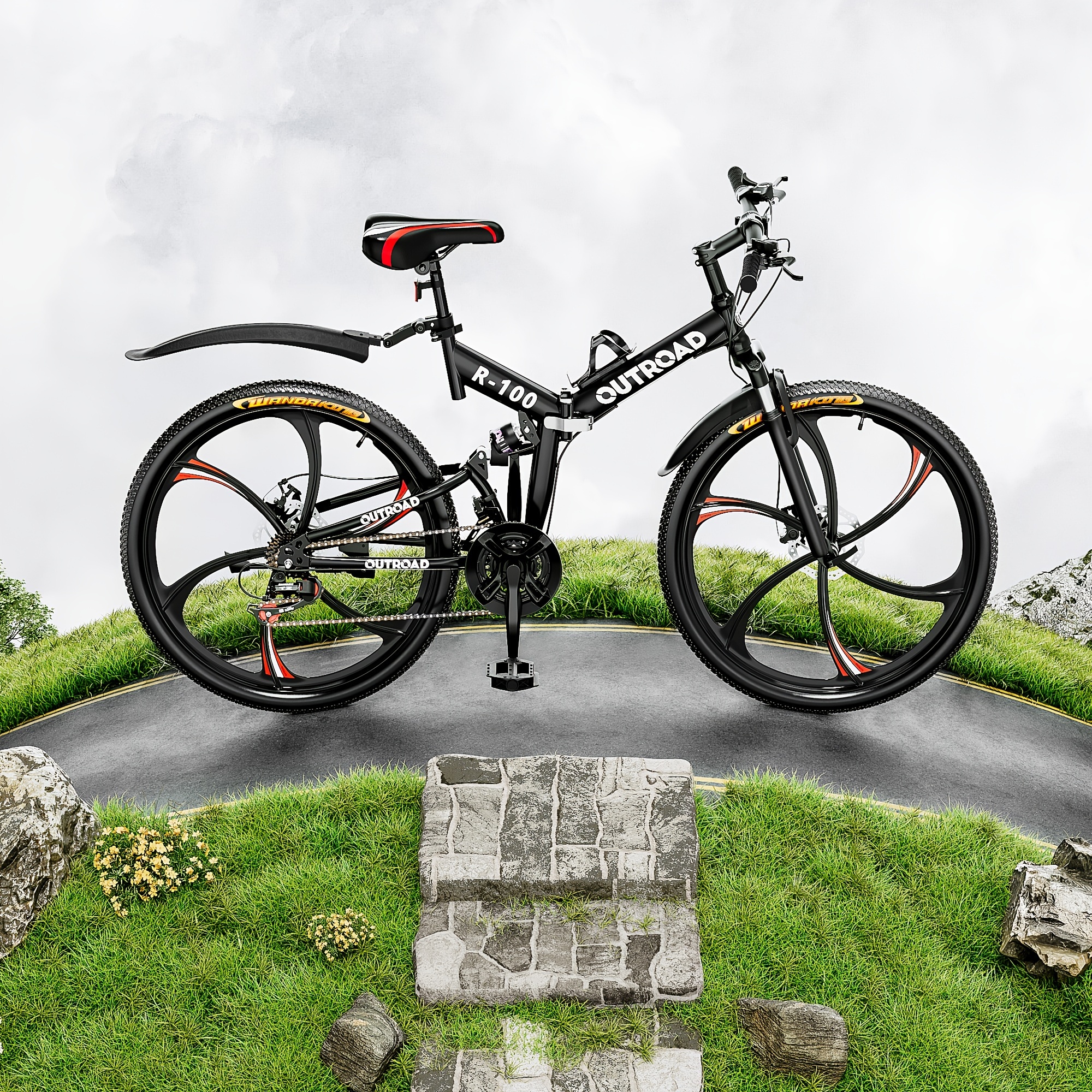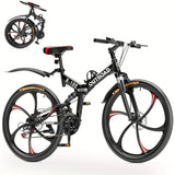 26 Inch Adult Folding Bikes\u002FMountain Bikes, 21 Speeds Mountain Bicycles with Full Suspension