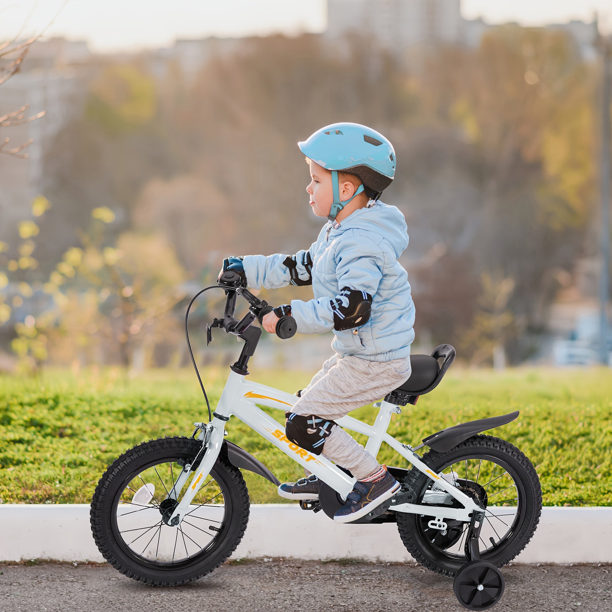 Grey and Orange 12\u002F14\u002F16 Inch Kids Bike with Training Wheels - Ideal Gift for Toddlers